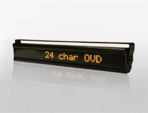 The Ferrograph On Vehicle Display (OVD) is a compact vehicle mounted passenger information display specifically designed for bus, train and tram applications. Displays are available in 16, 20 or 24 character versions with an overall character height of 38.8mm. Characters are displayed in 8 pixel high fonts allowing partial descenders to be displayed