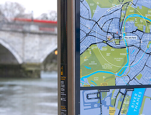 Each individual sign has a unique commentary of the surrounding area with vital travel information and a description of the local geography. To date we have manufactured and installed over 1200 Legible London units and are always looking to expand on this figure to make walking through the capital an altogether enjoyable experience rather than a stressful one.